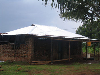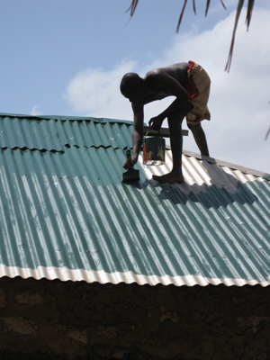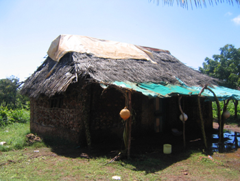 Auch hier war das Makuti durch die Regenfälle zerstört. Notdürftig war das alte Dach mit vergammelten LKW Planen repariert.