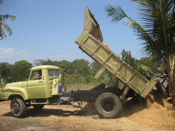 Anlieferung von 1000 handgehauenen Korallensteinen.