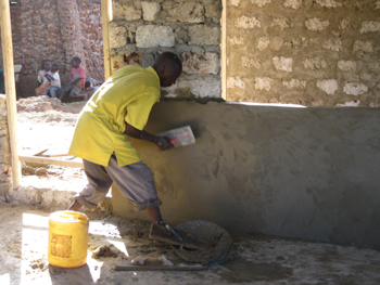 Maurermeister Toja bei der Arbeit.
