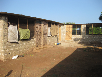 Auch in dem Anbau werden die Wände bis in die Hälfte verputzt. Das erleichtert das Säubern und Desinfizieren.